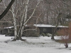 My parents’ home at 344 Council Rock Ave., Rochester NY (Brighton) is a Don Hershey house. My father wanted a modern house in every sense of the word. The house is on one floor with an open plan. There are huge windows which allow views of the outdoors from all rooms. As with many Hershey houses, wood and stone are combined beautifully to give a textural feel inside and out. There was originally radiant heating throughout but when there was a difficulty, it was impossible to find the break to repair so baseboard heating was installed in the 60’s. The house is still in the famiily and still has a wonderfully modern feel and function.