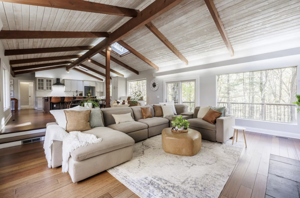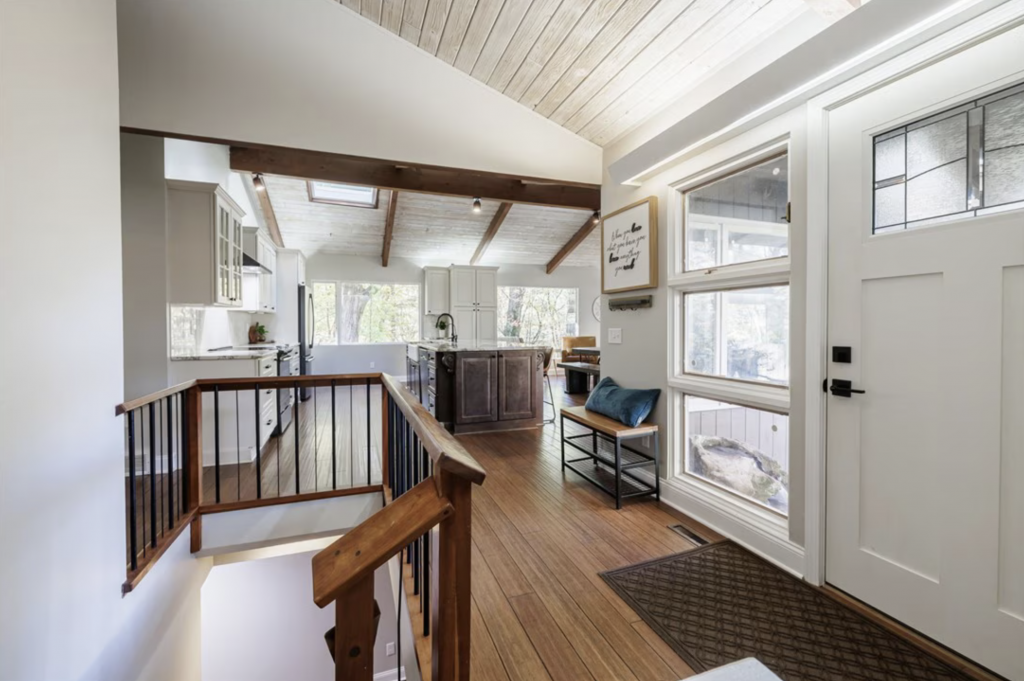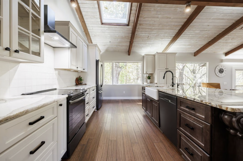 Designed by renowned architect Don Hershey, this remarkable 5 bedroom, 3 full bath ranch blends timeless mid-century design with stunning modern updates on nearly 6 private acres backing to Lilly Pond. The fully remodeled kitchen is the heart of the home, featuring an expansive island with breakfast bar, granite counters, custom cabinetry, & an open-concept layout perfect for entertaining & everyday living. The main level showcases beautiful hardwood floors, grand ceilings, skylights, & southern-facing windows that fill the home with natural light. The great room serves as a true centerpiece — featuring a floor-to-ceiling fossil-stone wood-burning fireplace, large windows overlooking the property, & sliding-glass doors leading to the private deck. The primary suite includes hardwood floors, a fully updated ensuite bath with double sink vanity, tile shower with glass door, first-floor laundry, & its own sliding-glass doors opening to the deck, offering a peaceful retreat. An office along with a bonus room which connects the garage to the main living area add versatility & functionality to the main floor. The lower walkout level, included in the square footage, offers four bedrooms, including the standout “Cave Room” — an ode to the home’s location on Cavan Way — featuring heated ceramic tile floors & sliding-glass doors that open to the new lower-level patio. This level also includes two fully updated full bathrooms, a relaxing sauna & an additional bonus room. The remaining rooms feature brand-new carpet & fresh paint, highlighting the home’s extensive renovations. Outside, enjoy a tranquil water feature, beautiful landscaping with mature rhododendrons. This one-of-a-kind Don Hershey masterpiece seamlessly blends artistry, function, & modern comfort.