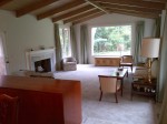 The flagstone entry hall opens into the hardwood foyer. The 11×16 dining room is open to the 16 x 22 living room (mentioned above) that includes a marble fireplace. The 12 x 20 family room features beautifully pegged hardwood floors and built in shelves. Doors from the living room, kitchen and master bedroom open onto a flagstone patio. From the dining room one enters a 12 x 21 foot sunroom finished in the same cedar planking used on the exterior of the house.